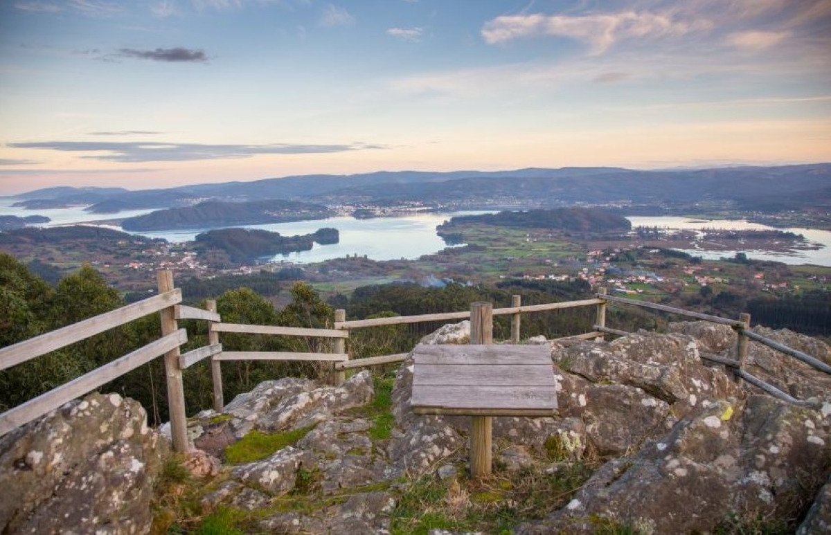 Para entrar —ou saír— de Cariño hai que pasar pola (parroquia da) Pedra, como algún cartel lembraba ata non hai moito. Desde alí, cara ao alto, está o Miradoiro da Miranda, pode que a mellor atalaia da zona, a case 500 metros de altura e que permite comprobar a tortuosa entrada da ría entre Estaca de Bares e cabo Ortegal.