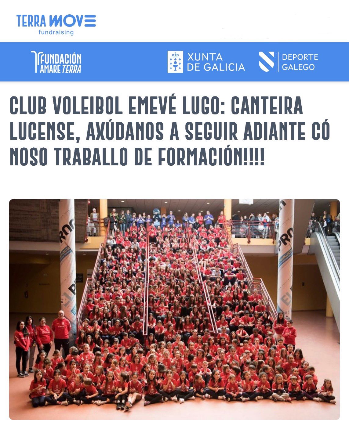 O club nacía co equipo feminino sénior pero a cousa foi medrando e pronto se incorporou a sección masculina. Agora mesmo teñen tres equipos en categoría nacional, 13 equipos en competición autonómica e 32 equipos na liga escolar. En total hai unhas 530 persoas no club, entre xogadoras, xogadores e persoal técnico. “En Lugo o voleibol hai tempo que deixou de ser un deporte minoritario”, relata Bouza, ao tempo que puntualiza que ata teñen unha lista de espera con 40 nenas e nenos para incorporarse aos equipos. “O feito de non ter ningún roce co equipo contrario faino moi limpo e iso é moi valorado polos pais. Ti es a miña rival pero non tes que ser a miña inimiga. En Lugo funciona moi ben o boca a boca e nós somos un club moi querido”, relata.