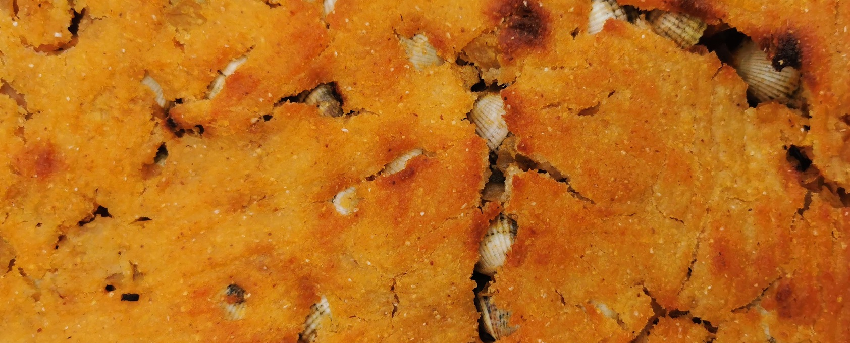 A empanada de millo e berberechos con cuncha forma parte da paisaxe rianxeira. CC-BY-SA Jorge Guitián