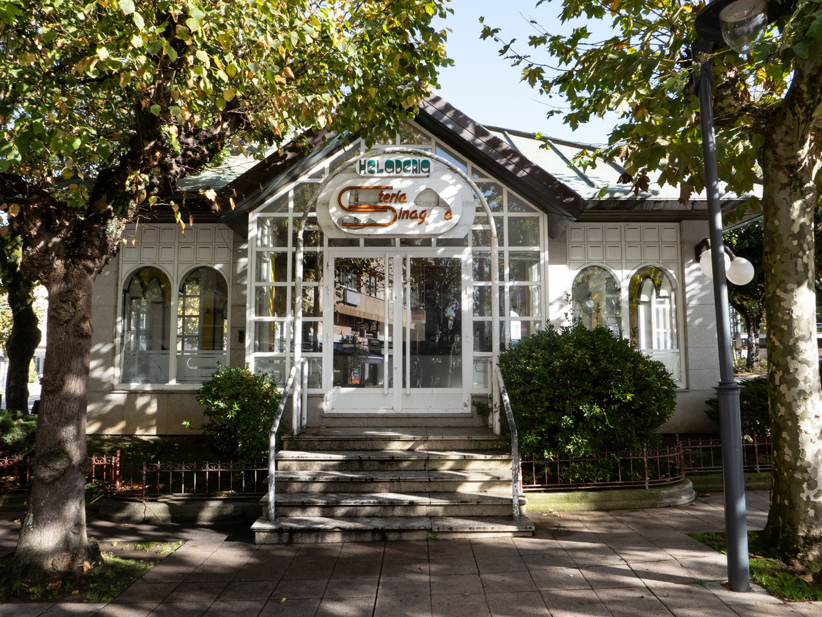 A xeadería Cafetaría Sinagoga, situada na praza do Concello e que pechou en 2019 (Carballo) -