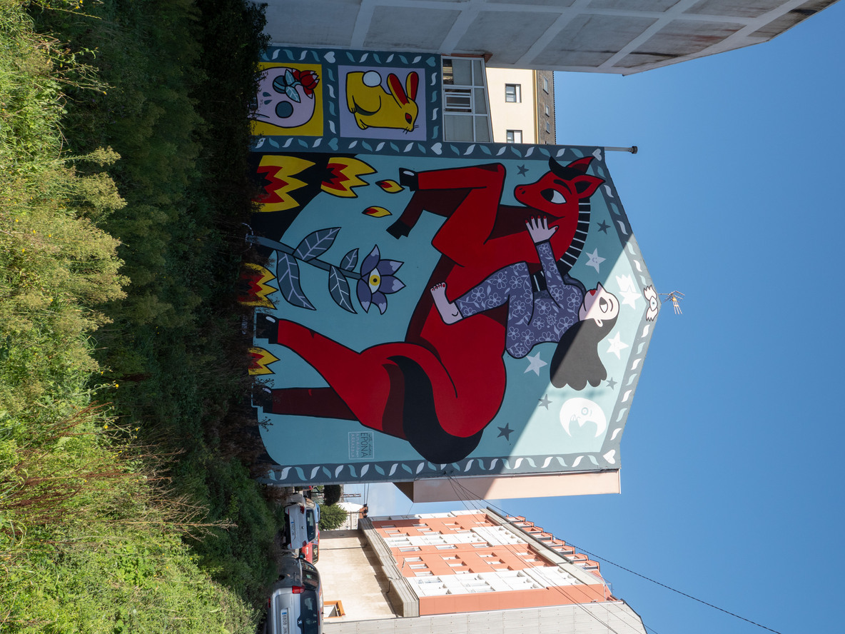 Aproveitamos para presentar os nosos respectos ao mural de Amaia Arrazola, ilustradora recentemente falecida, que agora perdura en Carballo para sempre a través da súa “deusa Epona no inframundo”