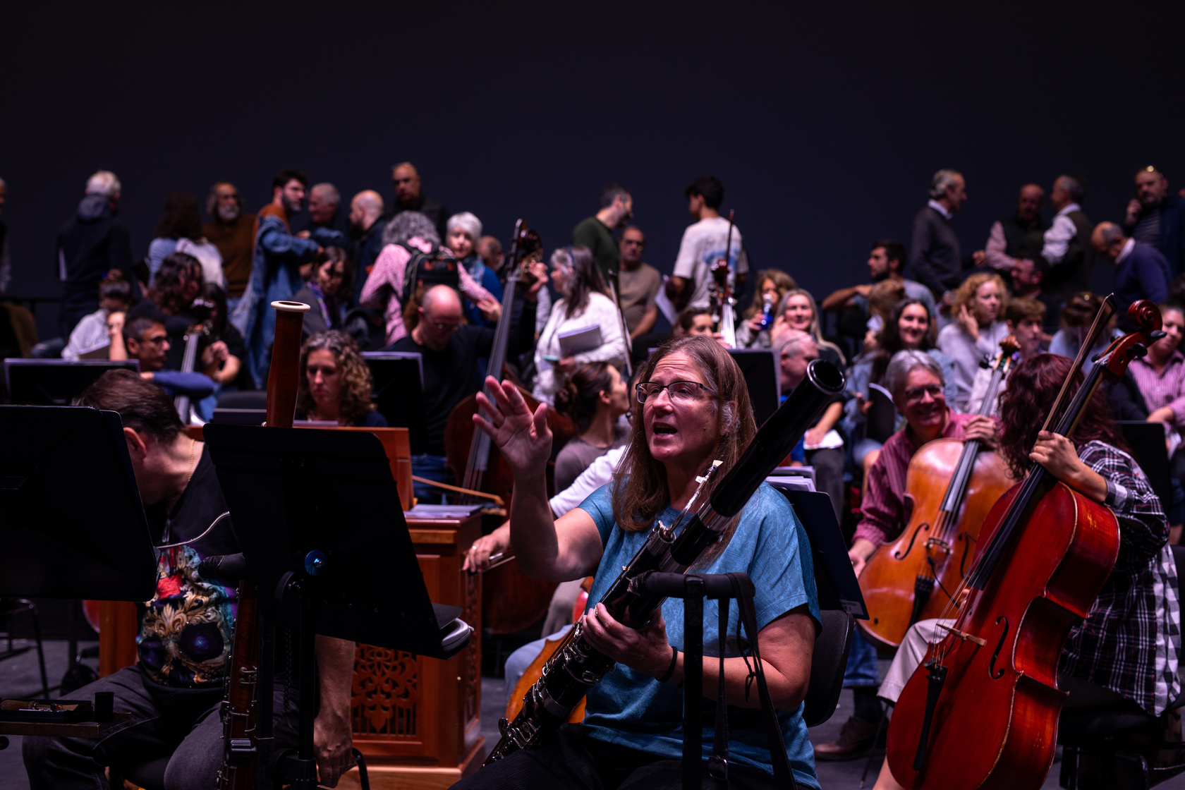 Outra cousa especial é que comparto orquestra co meu pai, que é un dos violonchelistas da Sinfonica. Isto ten cousas boas e malas, tamén, porque somos un pouco monotemáticos. (risos) Quedamos para xantar en familia e rematamos falando de traballo: “Menuda metedura de pata o outro día, eh?”, ou: “Quedácheste co que fixo aquel?” .Ou lembrámonos dese concerto especialmente bo no que o público rematou entusiasmado e nós sudando, berrando, case en éxtase. Mola, pero tamén che digo que ás veces estou en plan: “Papá, imos falar doutras cousas. Que estás a ver en Netflix?” (risos). A verdade é que recoñezo que é un privilexio poder velos a diario —miña nai vén a moitos ensaios e non se perde un concerto— e poder compartir tanto con eles.