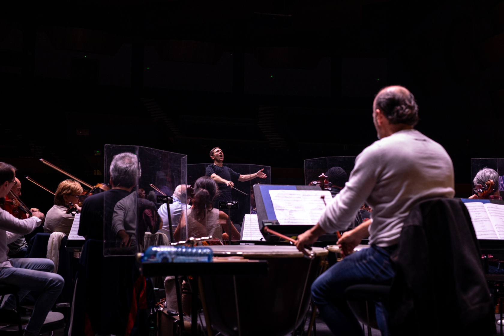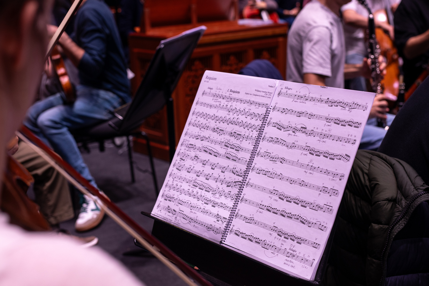 E aquí sigo, e estou encantado. É un traballo fantástico, no sentido de que é incriblemente dinámico: cada semana facemos un repertorio distinto. Moita xente non o sabe; de feito, pensan que facemos como fai a Panorama, por exemplo, que tamén é unha orquestra. Eles preparan un espectáculo que levan de xira nove meses; nós, cada semana, facemos un repertorio novo. Hoxe estamos preparando o Réquiem de Mozart, unha peza especial. O tipo faleceu cando o estaba a compoñer, no oitavo compás, xusto no “Lacrimosa”, e a súa muller, Constance, para poder cobrar o encargo e pagar parte das numerosas débedas do seu marido, pediulle a Süssmayr, un dos discípulos de Mozart, que a rematara. Outros compositores atrevéronse a facer a súa propia versión do final da obra e mañá imos tocar a de Robert Levin, un compositor e musicólogo contemporáneo. Xa ves que é imposible aburrirse. (risos)