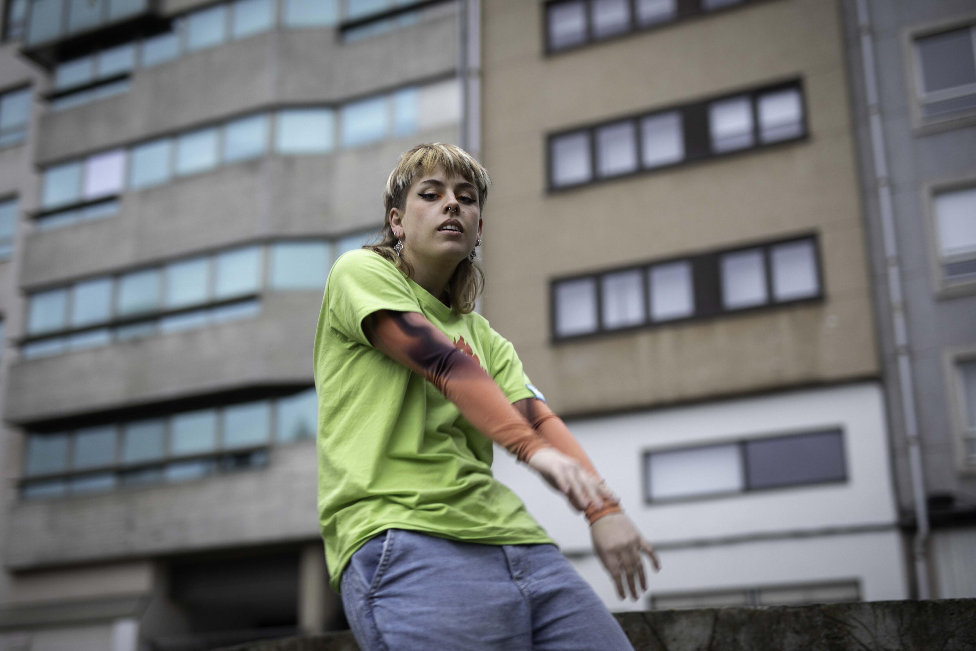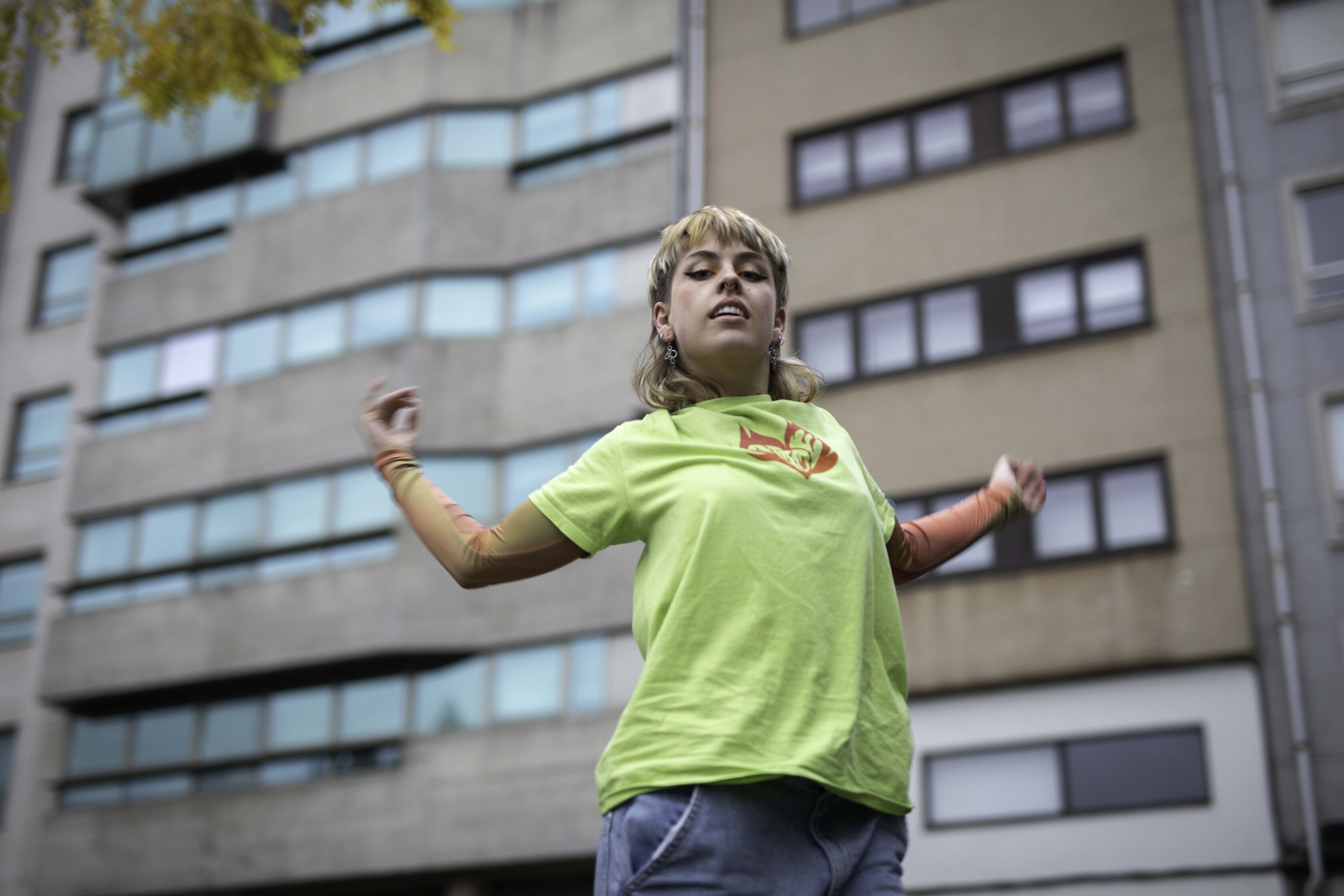 Noelia Mato (Ponteceso, 2000) é bailarina e creadora na compañía D'elas, mestra de danza e neofalante. No seu traballo fin de grao en Socioloxía analiza a relación entre a lingua, a identidade e a música en galego, algo que para ela non está a ser valorado como merece. “É algo importantísimo, sobre todo tendo en conta todo o que vén arrastrando a lingua historicamente dende a ditadura”, asegura. Para ela o cambio ao galego chegou na universidade e resultou máis natural do que pensaba. “Para min foi das mellores decisións que tomei na vida. Ata penso que me mudou a personalidade e todo. É como que sinto que esta si son eu de verdade”, subliña.