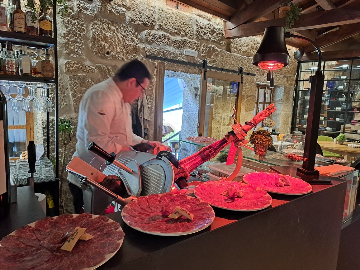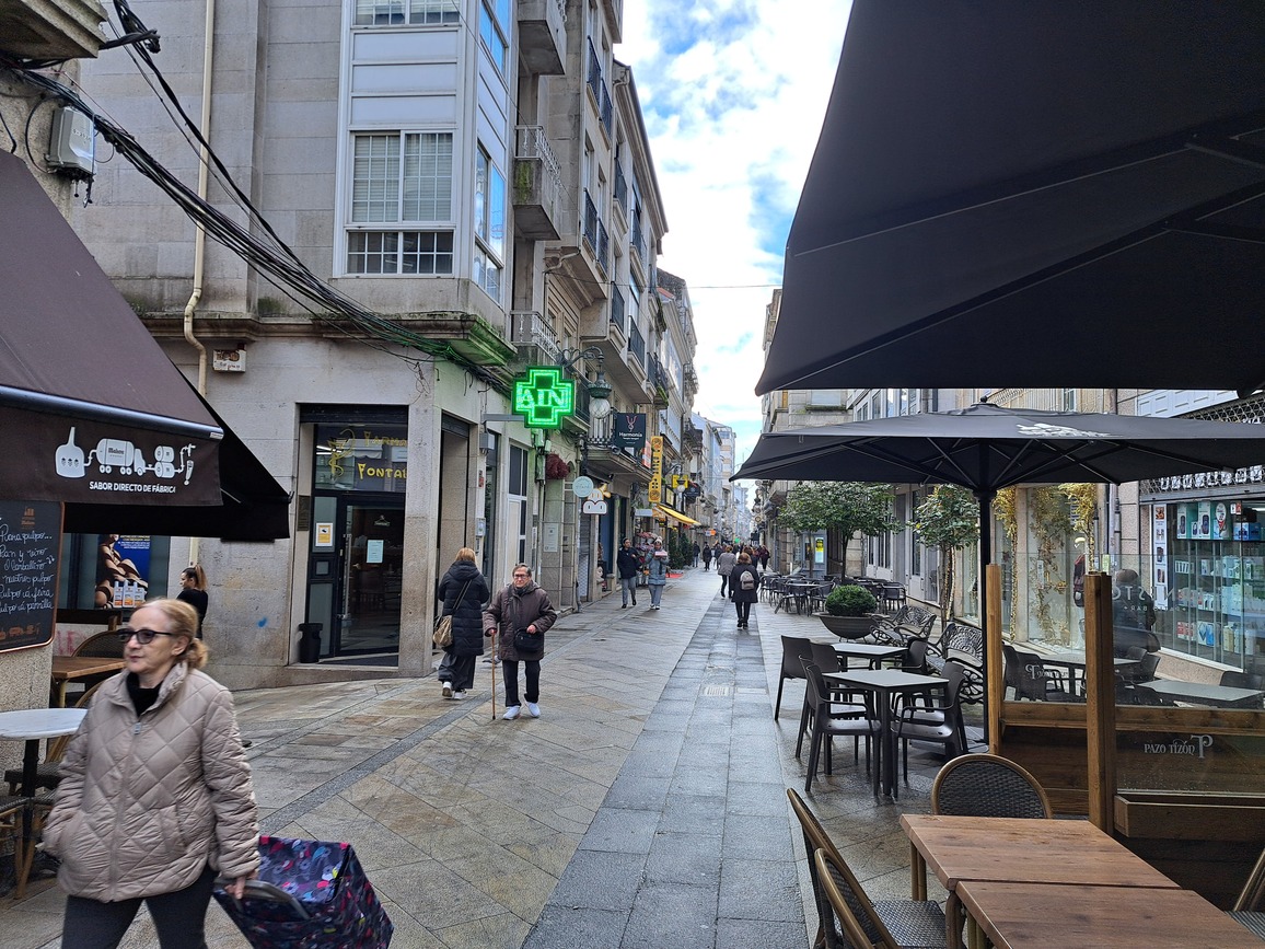 O percorrido continúa pola arteria comercial que é a rúa Rosalía de Castro. “Ola Lino!”. Quen saúda é Silvia Baranda, concelleira e pulpeira.