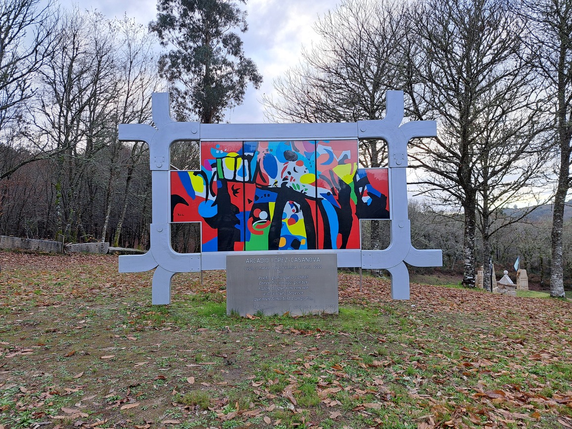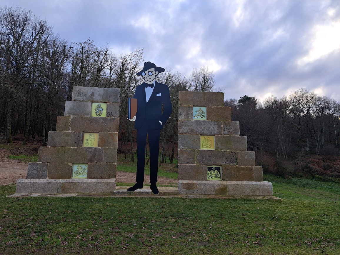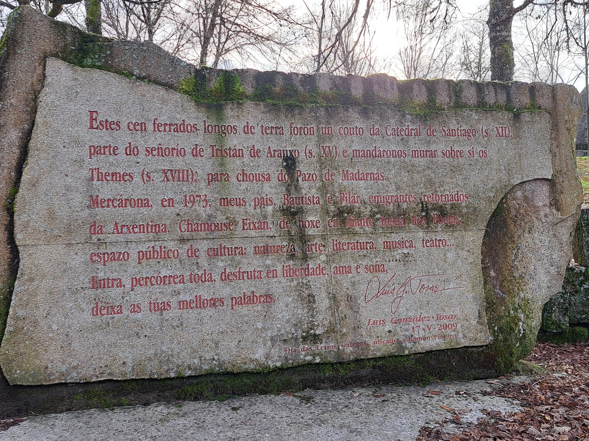 Paseando polo parque, situado en Esgueva (parroquia de Madarnás), atopamos unha sorte de galería da literatura galega. “Son paneis en gran tamaño, é a única que existe desta materia. Son grandes retratos de escritores e escritoras da literatura galega.